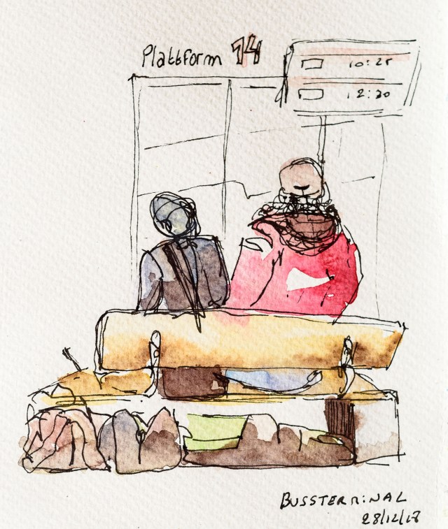 Journée balade et pêche. Un croquis rapide du lieu avant que mes aquarelles ne gèlent.